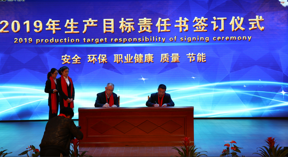 會議第二環節組織簽訂(dìng)2019年度生產目標責任書,為了落實“安全第(dì)一、預(yù)防為(wéi)主”的工作方針、確保安全生產(chǎn)目(mù)標的實現,公司各級領導逐一簽訂“2019年度生(shēng)產目標(biāo)責任書”,把安全、環(huán)保、職業健康、質量、節能等方麵的(de)要求落實責(zé)任,確保人人頭上有指標,將責任落實到最基層的各個崗位。